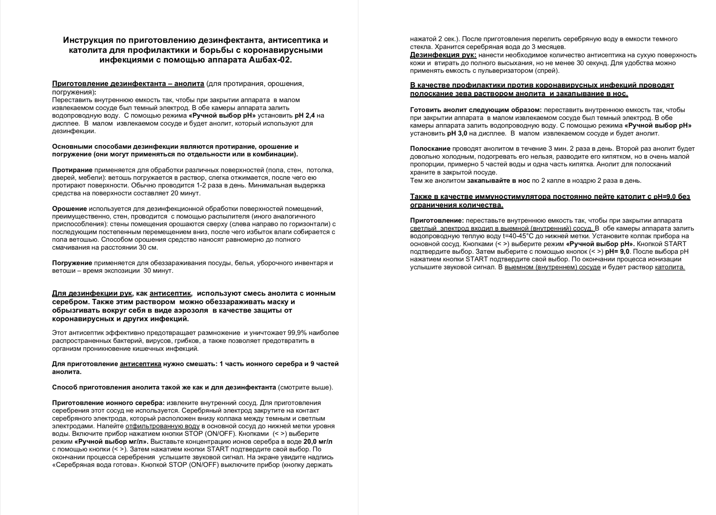 Для просмотра инструкции по приготовлению дезинфектанта с помощью Ашбах-02 нажмите здесь!