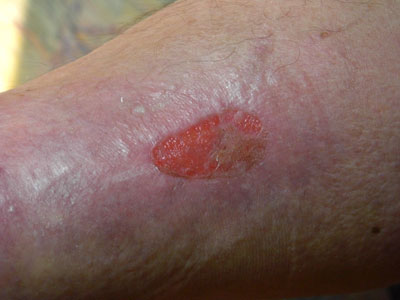 Трофическая язва, развившаяся вследствие варикозного расширения вен. Не заживала 9 лет.