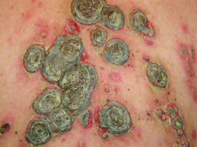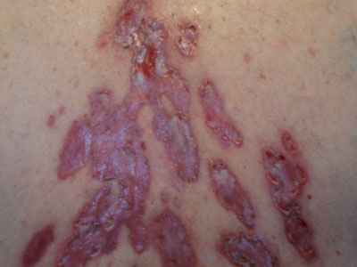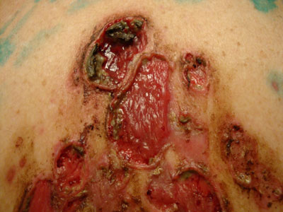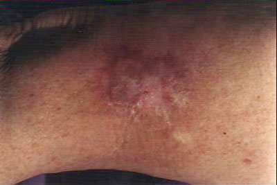 | Заживление начиналось с центра злокачественной опухоли. Есть следы от пластыря. |