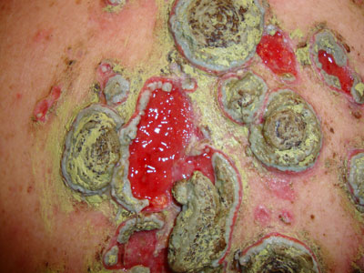 Очень тяжелый вид рака кожи, традиционными методами медицины в лечении отказано. Прогноз – неблагоприятный ( выживаемость до 1 года). Фотографии сделаны в 2009 году. Больной в настоящее время жив, рецедива болезни не было.
